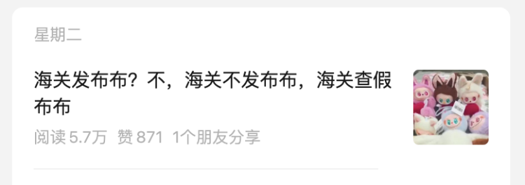 “海关发布”感慨:“每天沉浸在抓Lafufu中无法自拔”,网友们也追起了“海关抓布布”连续剧。
